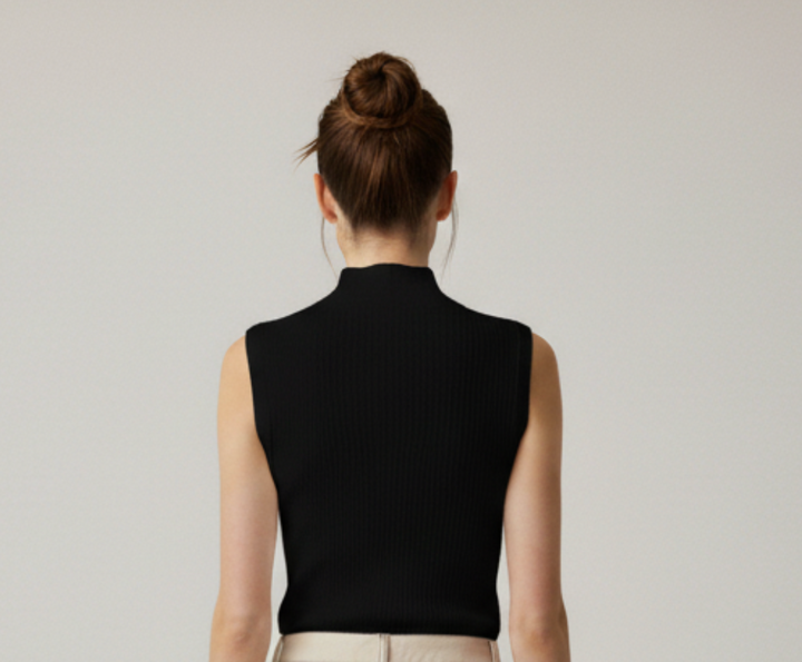 Elevate your wardrobe with this chic ribbed knit top. Crafted from soft, stretchy fabric, it offers ultimate comfort while flattering your silhouette with its sleek, modern fit. The high, ribbed collar adds a structured touch, giving the top a refined, contemporary look. This piece is perfect for both casual and dressed-up moments. Whether worn on its own or layered under a jacket, this top is a versatile addition to any stylish wardrobe.