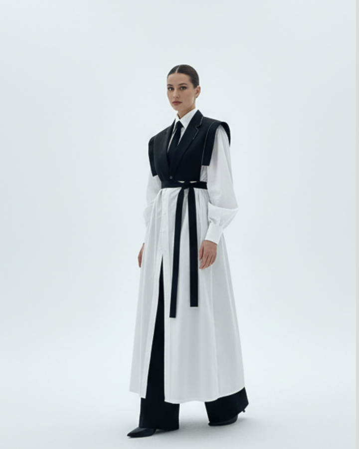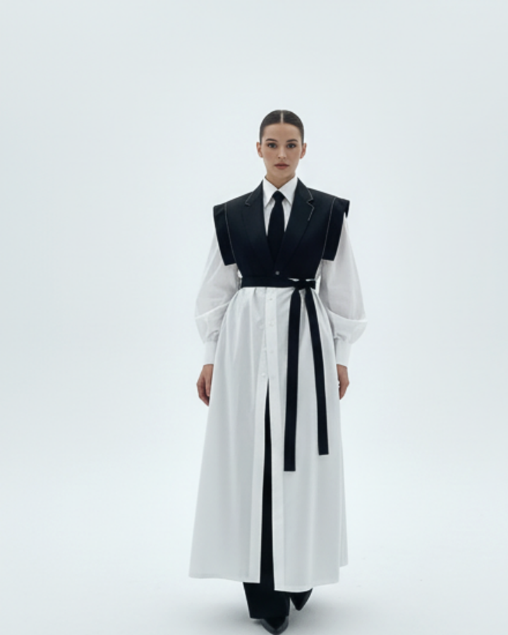 Enter your details in the “Customize” section — our atelier will craft your garment precisely to your proportions.